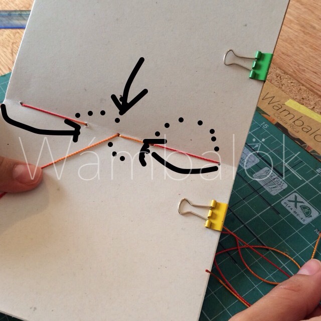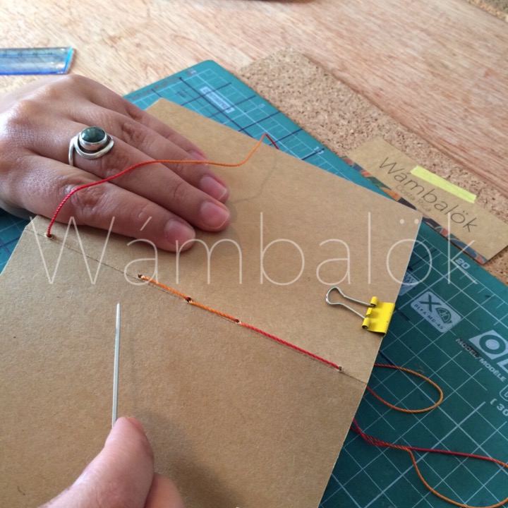 Ahora viene la parte de cuidado para que quede bien unido el cuaderno, las puntadas son similares a las de porta pasaportes.