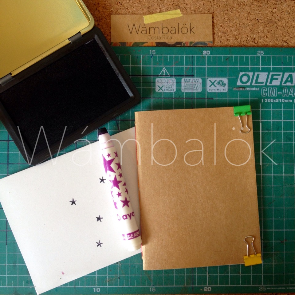 Decoré el cuaderno con un sello de estrella que tengo desde hace tiempo, se secó y tuve la idea de reutilizarlo, entonces ahora lo uso con una almohadilla para sellos.