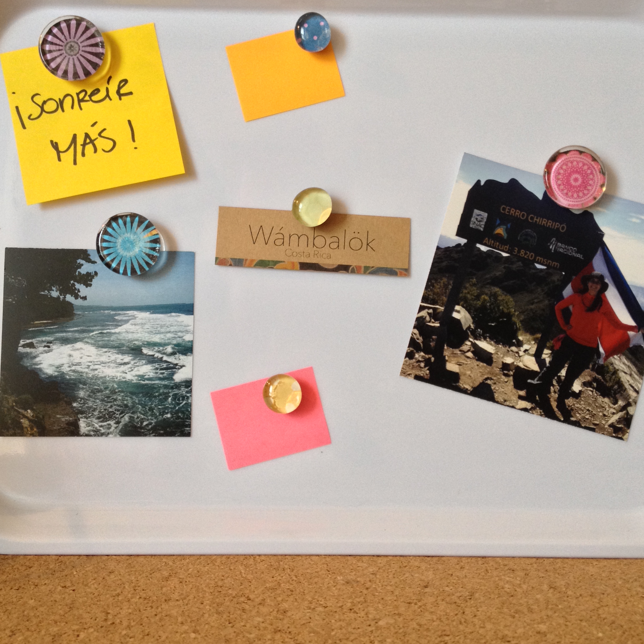 Yo utilicé una bandeja de desayuno para colocar mis imanes y tener una pequeña pizarra de notas y recuerdos.