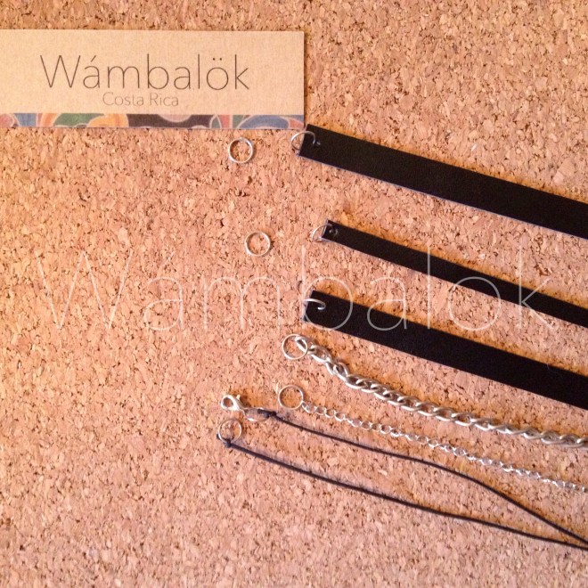 Las piezas de cuero se pueden cambiar por trenzas de tela, retazos de algún otro material, más cadenas o alguna otra cosa. También se pueden hacer aretes a juego y pulseras.