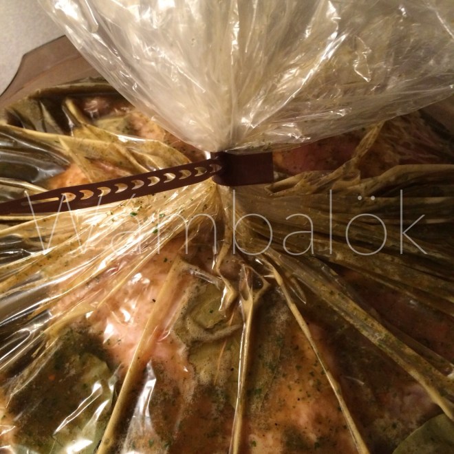 Yo utilizo una bolsa para hornear, se puede conseguir en cualquier supermercado, con esta bolsa todo queda homogéneamente marinado y la carne queda increíblemente suave al cocinar; igual se puede preparar en una bandeja para hornear con tapa.