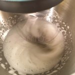 Continuamos batiendo hasta que se comiencen a formar picos firmes, este proceso durará unos 20 minutos o menos dependiendo de la potencia de la batidora.