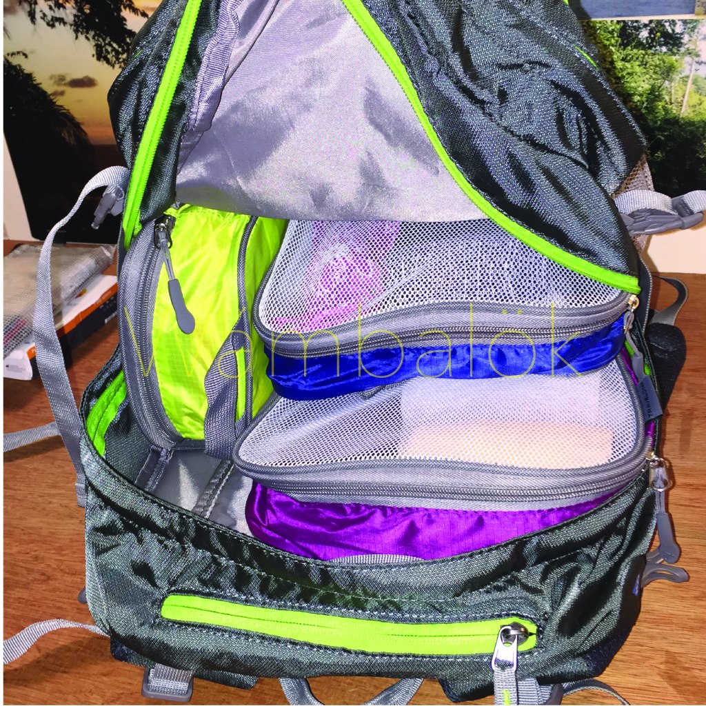 Al fondo del bulto los zapatos, luego acomodé todo lo demás como un tetris.