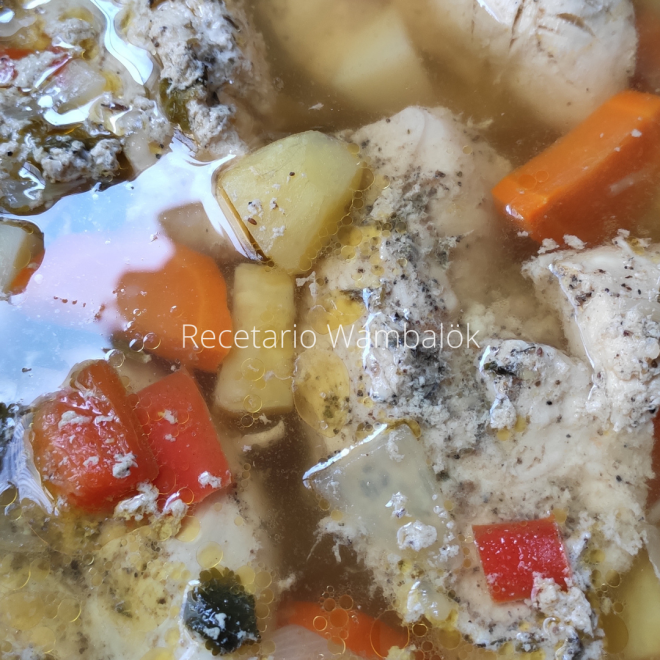 - Agregamos las pechugas, cubrimos con el litro y medio de agua y tapamos hasta que todo esté bien cocido.