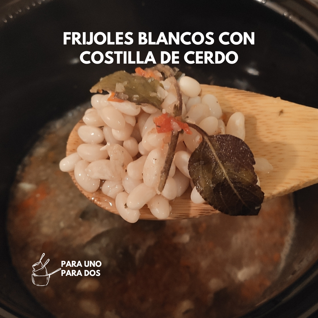 Primero preparar los frijoles blancos, con la mezcla de sofrito, ajo y hierbas aromáticas , junto con el agua; hasta que estén prácticamente listos. En olla de cocimiento lento serán unas 2.5 horas.