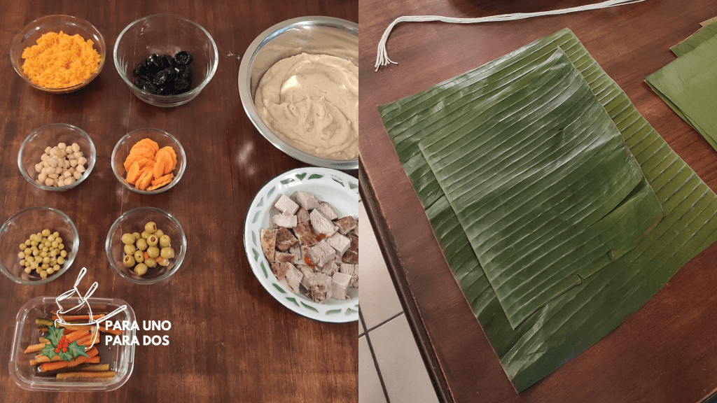 Mise en place para el montaje de los tamales