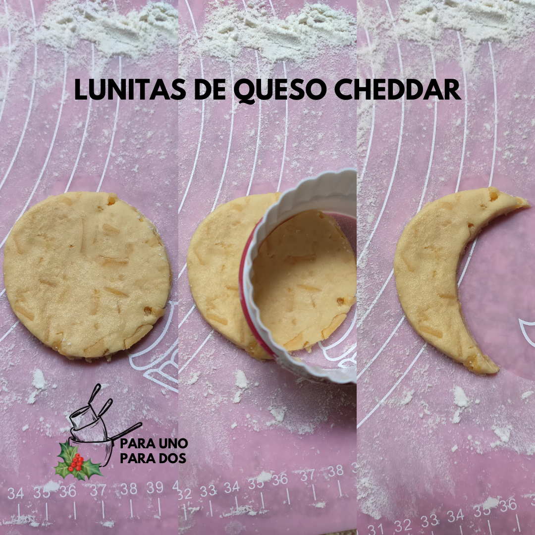En una superficie, previamente enharinada, se extiende la masa hasta que quede un poquito gruesa, unos 5mm. Con un molde redondo o un vasito, se cortan las lunas, llenas o medias lunas, una vez listas se barnizan con la mezcla de yema y leche.