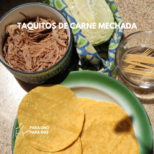 Tostaditos, crujientes y al horno. Ya tenía lista la carne mechada que hicimos el fin de semana, en la refri tenía ¼ de repollo, fui a la pulpería por un paquete de tortillas y ya casi estaban listos mi versión de tacos ticos. Esta receta no tiene proporciones exactas, depende mucho del antojo que tengan y la cantidad de ingredientes en casa.