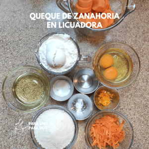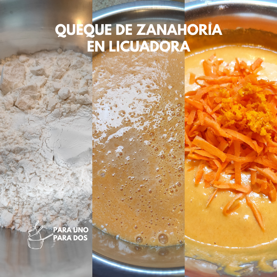 En la licuadora agregar la zanahoria, aceite y huevos; licuar hasta tener una textura uniforme. Agregar el azúcar, licuar hasta integrar.