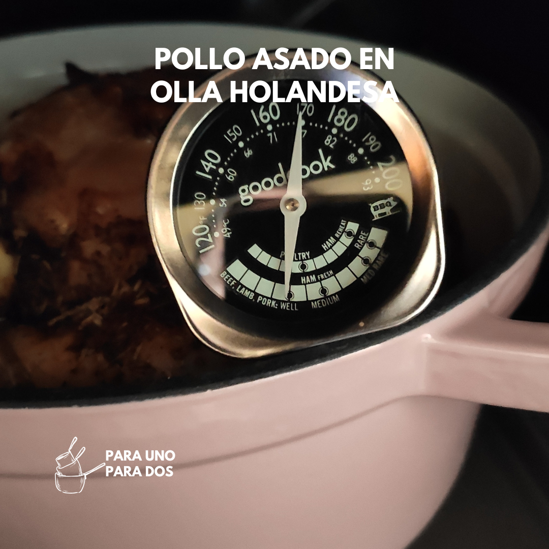 Importantísimo para una cocción óptima de este pollo, tener un termómetro para carnes, para saber con seguridad, cuando está totalmente cocido.