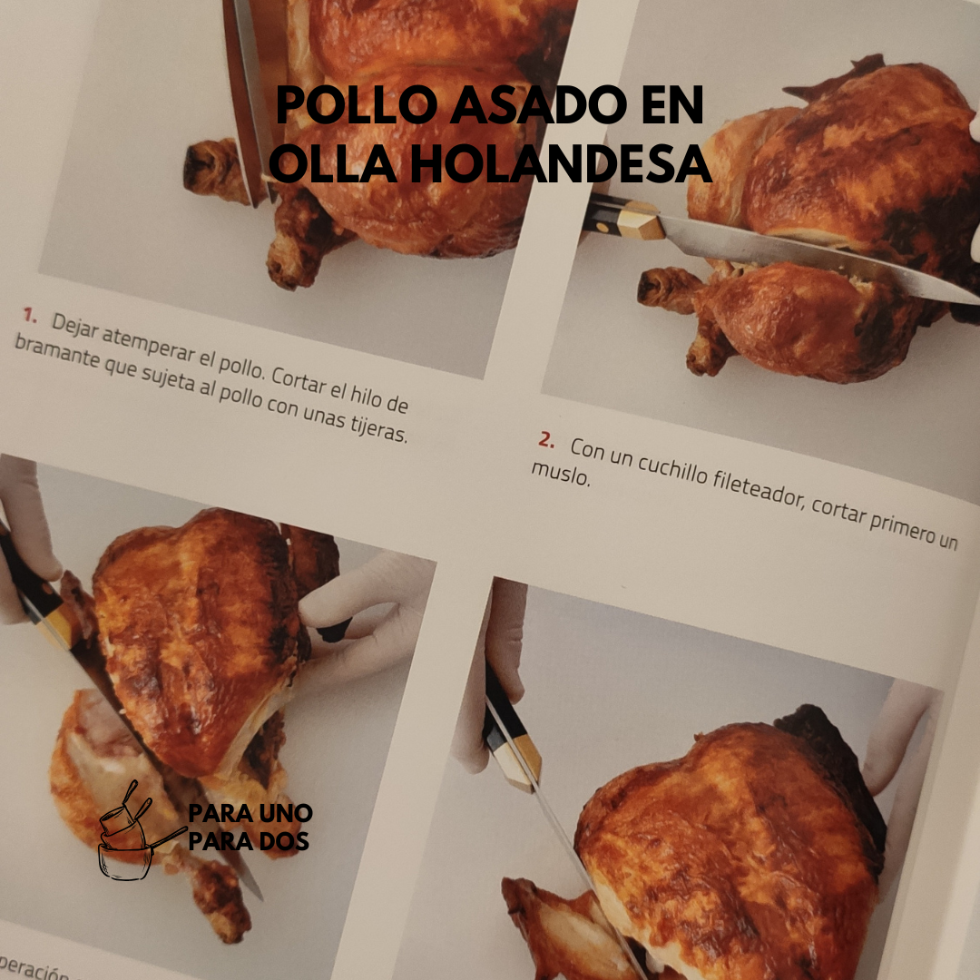Cortar el pollo y servir, tenemos un libro de cocina donde viene explicado cómo cortar un pollo entero y lo utilizamos como guía, solo que nos falta practicar más.
